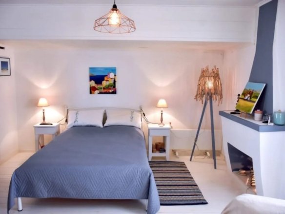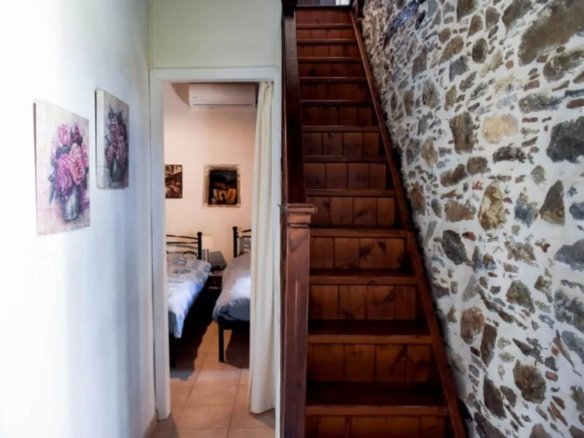 Située au cœur du village d’Avlonari, cette maison en pierre, entièrement rénovée (poutre, plancher, pierre intérieure, façade) tout en conservant son authenticité vous fera succomber à son charme.