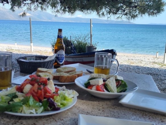 Au pied de la côte, une taverne et une plage aux eaux cristallines vous accueilleront à seulement 3 minutes en voiture.
