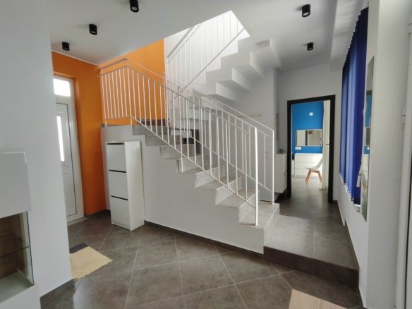 À l’étage, vous trouverez deux autres chambres spacieuses et soigneusement décorées, ainsi qu’une salle de bain moderne avec WC. Toutes les pièces ont été conçues pour optimiser le confort et la qualité de vie, que ce soit en résidence principale, secondaire ou pour un investissement locatif.